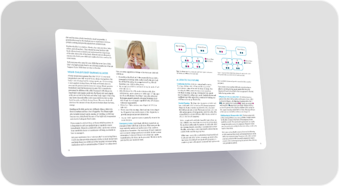 diet and become actively involved as much as possible. A grandmother may be the ideal person to experiment with low- Mother’s Genes Father’s Genes Mother’s Genes Father’s Genes protein cooking and provide special low-protein treats. Explain the DLC to relatives, friends, day-care providers, baby- sitters, and all teachers. They should become familiar with foods allowed and excluded, and understand the importance A B Normal Gene A B Normal Gene of the diet. Give a list of the foods allowed and not allowed to DLC Gene DLC Gene anyone who feeds your child and explain the list as well as the exact menu. C D C D Tell everyone who cares for your child that even “just a little bite” of a high-protein food is not allowed. Emphasize what can happen if your child does not stay on the diet. Figure 6. All children of a person with a DLC and a person who does Figure 7. Approximately half of the children of a parent with a DLC Here are some suggestions of things to do when your child is ill not have a DLC will be carriers of a DLC. and a parent who is a carrier of a DLC will have a DLC. YOUR CHILD’S DIET DURING ILLNESS with fever. A body temperature greater than 98.6° F (37° C) or a rectal • Do not force-feed food or I-Valex, especially if your child is A LOOK TO THE FUTURE their metabolic doctor and genetic counselor before another temperature over 100° F (37.8° C) is a fever. During fever, the nauseated or vomiting. Soda crackers may be the only food pregnancy. body’s rate of using food for energy speeds up. If extra energy he will feel like eating. Encourage intake of any allowed Continuing the Diet. A DLC is a serious health concern. is not supplied during illness, the body will break down its foods that your child is willing to eat. Treating a child as early in life as possible may prevent If you decide to have another child, give yourselves time to own muscle protein and fat stores for energy. Muscle protein • Encourage your child to continue drinking his medical food developmental delay and severe neurological damage. Not adjust to providing for the special needs of the first child. breakdown (and fat breakdown in some DLCs) needs to be if he tolerates it. following the LEU restricted diet may cause mental and Parents will want to be skilled in diet management for the DLC prevented in children with a DLC because it will release too • Offer Pedialyte® Oral Electrolyte Solution with added neurological damage at any age. Lifelong nutrition support before having another child. much LEU and organic acids into the blood. LEU and organic carbohydrate, such as dextrose or table sugar (3 Tbsp sugar must be adapted to each person’s needs. Metabolic doctors and acids are carried to the brain and other body organs where they to 8 fl oz of Pedialyte); Pro-Phree®; non-cola carbonated nutritionists provide support that is essential for helping your Offspring of a Person with a DLC. All children born to a may have a harmful effect. Give your child extra low-protein beverages; sugar sweetened carbonated beverages; Kool- child have a normal, productive life. person with a DLC will be carriers of the gene or have a DLC. food, formula, and fluids during illness. The extra food will Aid®; Tang®; tea with sugar; vegetable broth; or fruit juices As shown in Figure 6, all offspring of a parent with a DLC ( decrease the amount of muscle protein broken down for body with some sugar added. Family Planning. The chance that two carriers of a DLC will ) and a parent who is normal( ) inherit one normal ( energy. • Dilute the I-Valex mixture, or use liquid Jell-O® if it is have a child with a DLC is 1 in 4, or 25%, for each pregnancy ) and one DLC ( ) gene. Each one of their children will be a tolerated. (Figure 4). Because you have a child with a DLC, you know carrier. If a person with a DLC has children with a carrier for Feeding an ill child can be very difficult. Often a child with • Freeze any of the beverages listed and make into chipped that both parents are carriers. That means you have a 25% risk DLC, approximately one half (50%) of their offspring will have fever is restless and has a loss of appetite. The illness might ice. Frequently feed small amounts of this chipped ice to with each pregnancy of having another child with a DLC. The a DLC and one-half (50%) will be carriers (Figure 7). also include stomach upset, nausea, or vomiting. A child may provide energy and prevent dehydration. chance that two carriers will have a child who is a carrier is 1 become very dehydrated because of the high body temperature • As your child’s appetite improves, gradually return to the of 2, or 50% for each pregnancy. Childbearing by Women with a DLC. For the woman with and a lack of adequate fluid intake. usual diet plan. a DLC, having children may cause problems. A major concern Before a couple with a child who has a DLC plan to have any for the DLC women is the stress of the pregnancy on her If you suspect a cold or virus, or if your child has a fever, it Emergency Letter. Individuals with DLC should have an more children, they should take time to seriously think about metabolic control. The nutritional requirements can rapidly is important to call your pediatrician or metabolic doctor emergency letter with them at all times. This letter provides the special parenting tasks that parents of a child with a DLC change during the course of a pregnancy. Pregnant women immediately. Illness in a child with a DLC can be very serious. important information such as the name of the condition, must manage. Genetic counseling is recommended to review must be monitored carefully for their own safety, as well as the Your metabolic doctor or nutritionist will help you decide on explanation of symptoms, the importance of timely treatment the risks, and to discuss several reproductive options that are health of their baby. how to manage it. and treatment strategies, and your metabolic doctor’s contact av