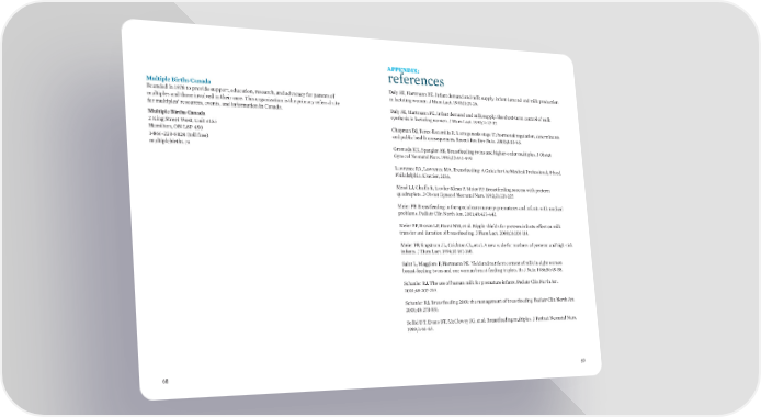 APPENDIX: references Multiple Births Canada Daly SE, Hartmann PE. Infant demand and milk supply: infant demand and milk production Founded in 1978 to provide support, education, research, and advocacy for parents of in lactating women. J Hum Lact. 1995;11:21-26. multiples and those involved in their care. This organization is the primary referral site Daly SE, Hartmann PE. Infant demand and milk supply: the short-term control of milk for multiples’ resources, events, and information in Canada. synthesis in lactating women. J Hum Lact. 1995;11:27-37. Multiple Births Canada 2 King Street West, Unit #155 Chapman DJ, Perez-Escamilla R. Lactogenesis stage II: hormonal regulation, determinants Hamilton, ON L8P 4S0 and public health consequences. Recent Res Dev Nutr. 2000;3:43-63. 1-866-228-8824 (toll free) multiplebirths.ca Gromada KK, Spangler AK. Breastfeeding twins and higher-order multiples. J Obstet Gynecol Neonatal Nurs. 1998;27:441-449. Lawrence RA, Lawrence MA. Breastfeeding: A Guide for the Medical Professional, 8th ed. Philadelphia: Elsevier; 2016. Mead LJ, Chuffo R, Lawlor-Klean P, Meier PP. Breastfeeding success with preterm quadruplets. J Obstet Gynecol Neonatal Nurs. 1992;21:221-227. Meier PP. Breastfeeding in the special care nursery: prematures and infants with medical problems. Pediatr Clin North Am. 2001;48:425-442. Meier PP, Brown LP, Hurst NM, et al. Nipple shields for preterm infants: effect on milk transfer and duration of breastfeeding. J Hum Lact. 2000;16:106-114. Meier PP, Engstrom JL, Crichton CL, et al. A new scale for mothers of preterm and high-risk infants. J Hum Lact. 1994;10:163-168. Saint L, Maggiore P, Hartmann PE. Yield and nutrient content of milk in eight women breast-feeding twins and one woman breast-feeding triplets. Br J Nutr. 1986;56:49-58. Schanler RJ. The use of human milk for premature infants. Pediatr Clin North Am. 2001;48:207-219. Schanler RJ. Breastfeeding 2001: the management of breastfeeding. Pediatr Clin North Am. 2001;48:273-551. Sollid DT, Evans BT, McClowry SG, et al. Breastfeeding multiples. J Perinat Neonatal Nurs. 1989;3:46-65. 68 69