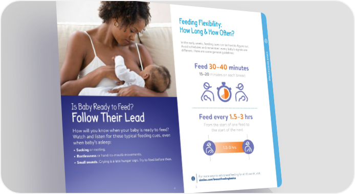 Feeding Flexibility: How Long & How Often? In the early weeks, feeding cues can be hard to figure out. Avoid schedules and remember: every baby’s signals are S different. Here are some general guidelines: ASIC B Feed 30–40 minutes 15–20 minutes on each breast BREASTFEEDING Is Baby Ready to Feed? Follow Their Lead Feed every 1.5–3 hrs How will you know when your baby is ready to feed? From the start of one feed to Watch and listen for these typical feeding cues, even the start of the next when baby’s asleep: • Sucking or rooting. 1.5-3 hrs • Restlessness or hand-to-mouth movements. • Small sounds. Crying is a late hunger sign. Try to feed before then. For more ways to milk breastfeeding for all it’s worth, visit similac.com/breastfeedingbasics 4 5
