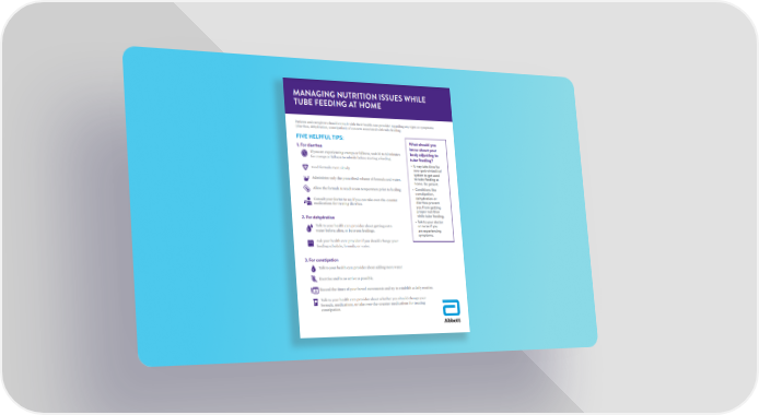 Helpful tips on how to recognize and manage nutrition issues while transitioning to tube feeding at home for diarrhea, dehydration, and constipation.